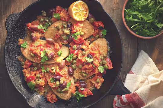 - Ha oppi oliven, de hakkede, soltørkede tomatene samt kapers.